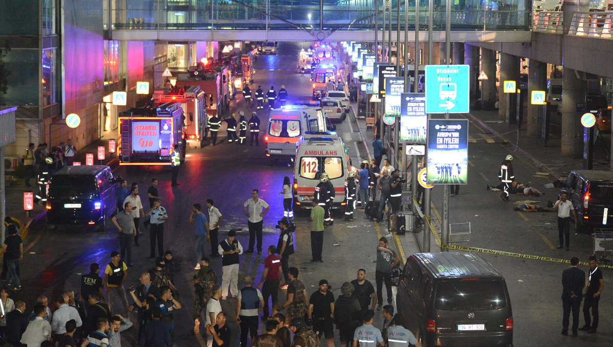 Κωνσταντινούπολη: Βομβιστική επίθεση στο αεροδρόμιο Ατατούρκ με 36 νεκρούς. Τρεις βομβιστές αυτοκτονίας άνοιξαν πυρ και ανατινάχτηκαν στο διεθνές αεροδρόμιο της Κωνσταντινούπολης, με συνέπεια τον θάνατο 36 ανθρώπων και τον τραυματισμό τουλάχιστον 150. «Οι ενδείξεις δείχνουν ότι πρόκειται για την οργάνωση Ισλαμικό Κράτος». Στους 41 έφτασαν οι νεκροί και στους 239 τραυματίες σύμφωνα με τον νεότερο απολογισμό που ανακοίνωσε ο κυβερνήτης της Κωνσταντινούπολης το μεσημέρι της Τετάρτης.